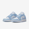 Este Air Jordan 1 Low apresenta uma base de couro branco com sobreposições Ice Blue, Swooshes, cadarços, forro e sola de borracha. Línguas brancas, logotipo Wings e entressola completam o design.