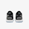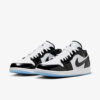 Este Air Jordan 1 de cano baixo apresenta uma base de couro branco com línguas de malha e Swooshes e sobreposições de couro envernizado preto. Jumpman preto nas línguas, asas brancas nos calcanhares, palmilhas inspiradas no AJ11 no topo de uma entressola branca e sola translúcida gelada completam o design.