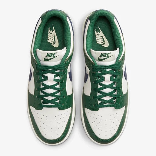 Vestido com um esquema de cores Gorge Green, Midnight Navy e Phantom. Este Nike Dunk Low vem construído em couro completo com línguas de malha e forro. Ele apresenta uma base Phantom com sobreposições verdes e Swooshes azul marinho no topo de uma sola de borracha de dois tons.