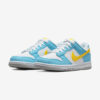 Construído com silhueta de cano baixo, o Dunk Low ‘Homer Simpson’ GS apresenta base de couro branco com sobreposições em azul claro e Swooshes laterais em amarelo vibrante. Na região dos calcanhares, o sneaker possui acabamento de malha e a assinatura NIKE em bordada em amarelo. Sua entressola branca e sola de borracha cinza completam o design.